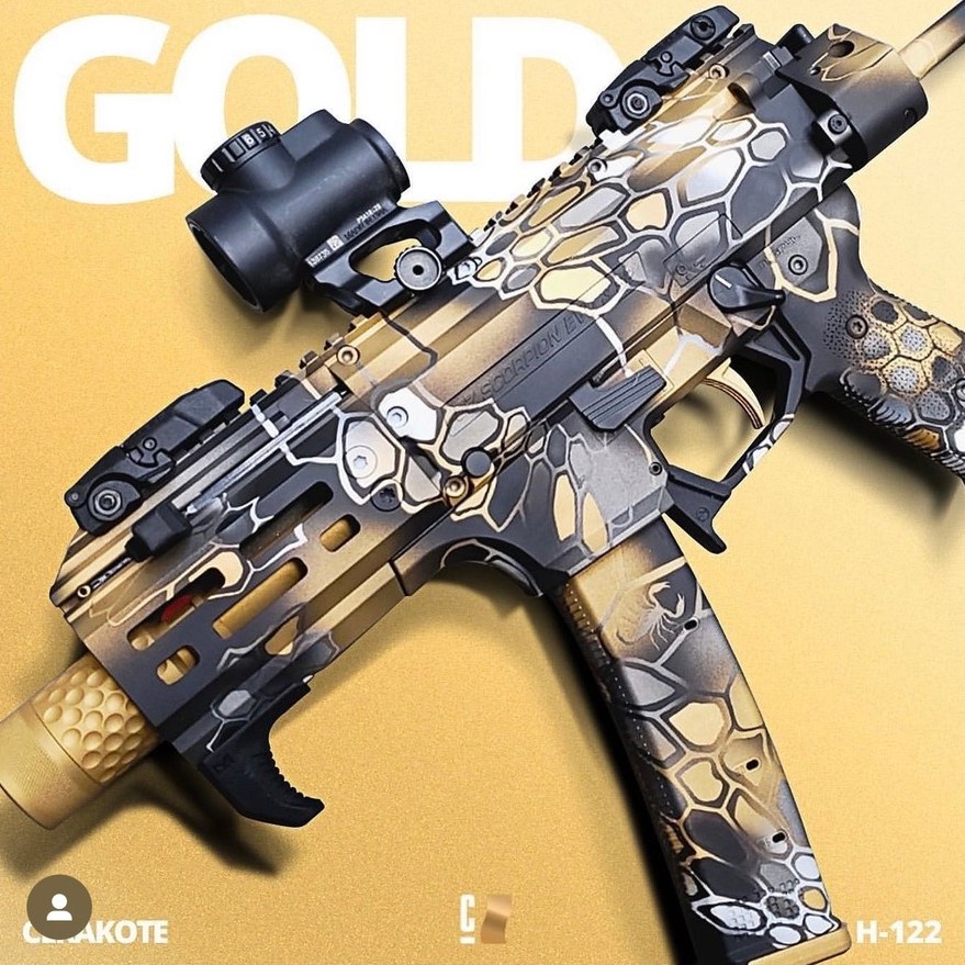 Below are an example of some of the 120+ Cerakote colours available to you. The photos below also give great examples of the types of customisation available and what products you can Cerakote.